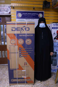بعد الاستلام ارغبت الارملة بأختيار ما يناسبها من / الثلاجة وتم تجهيزها من محلات الشاكري الخيريه .
