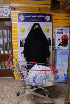 بعد الاستلام ارغبت الارملة بالحصول على المواد الغذائية وتم تجهيزها من محلات الشاكري الخيريه.