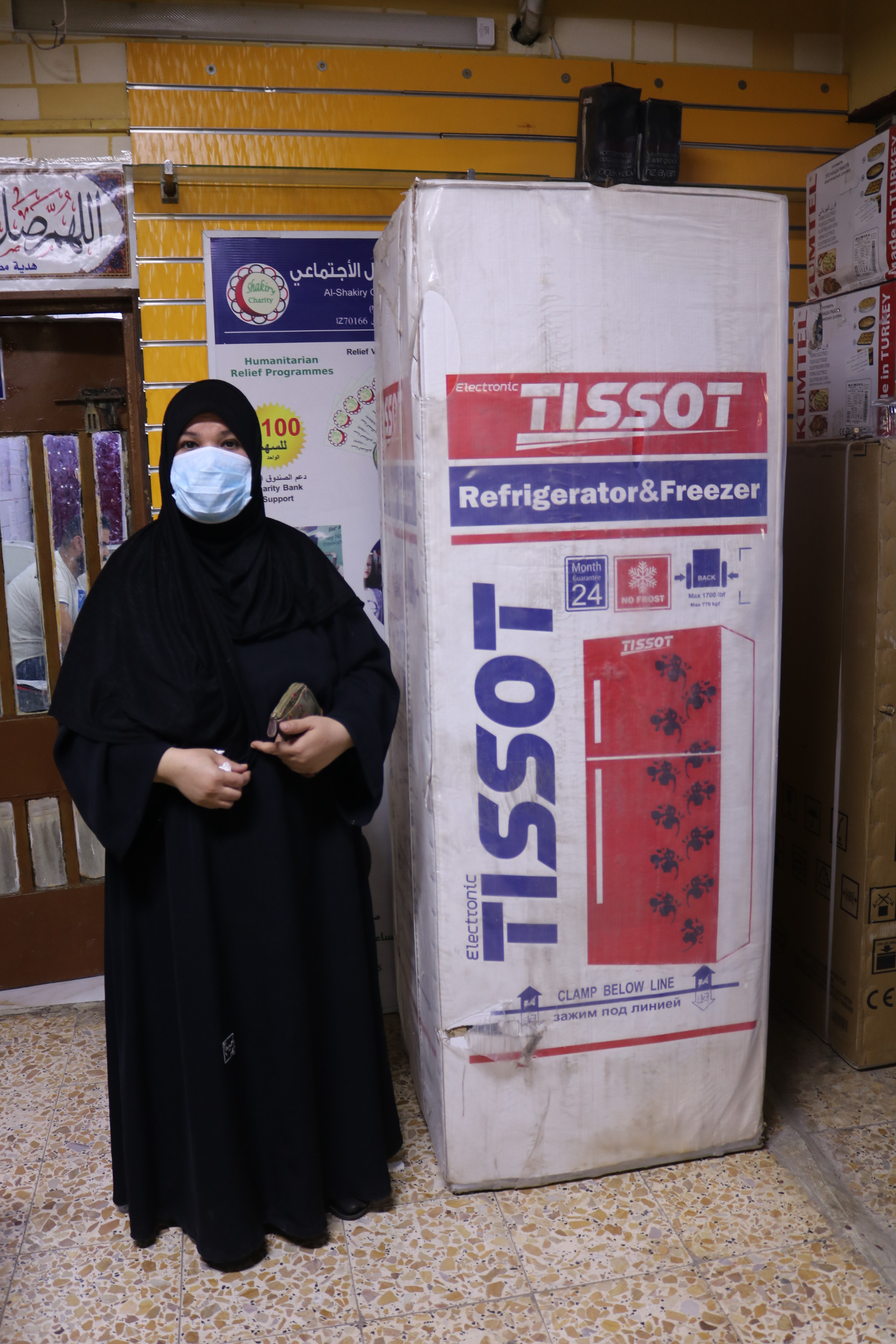 بعد الاستلام ارغبت الارملة بأختيار ما يناسبها من/ الثلاجة وتم تجهيزها من محلات الشاكري الخيريه ويتم التسديد من خلال الكفالة الشهرية .