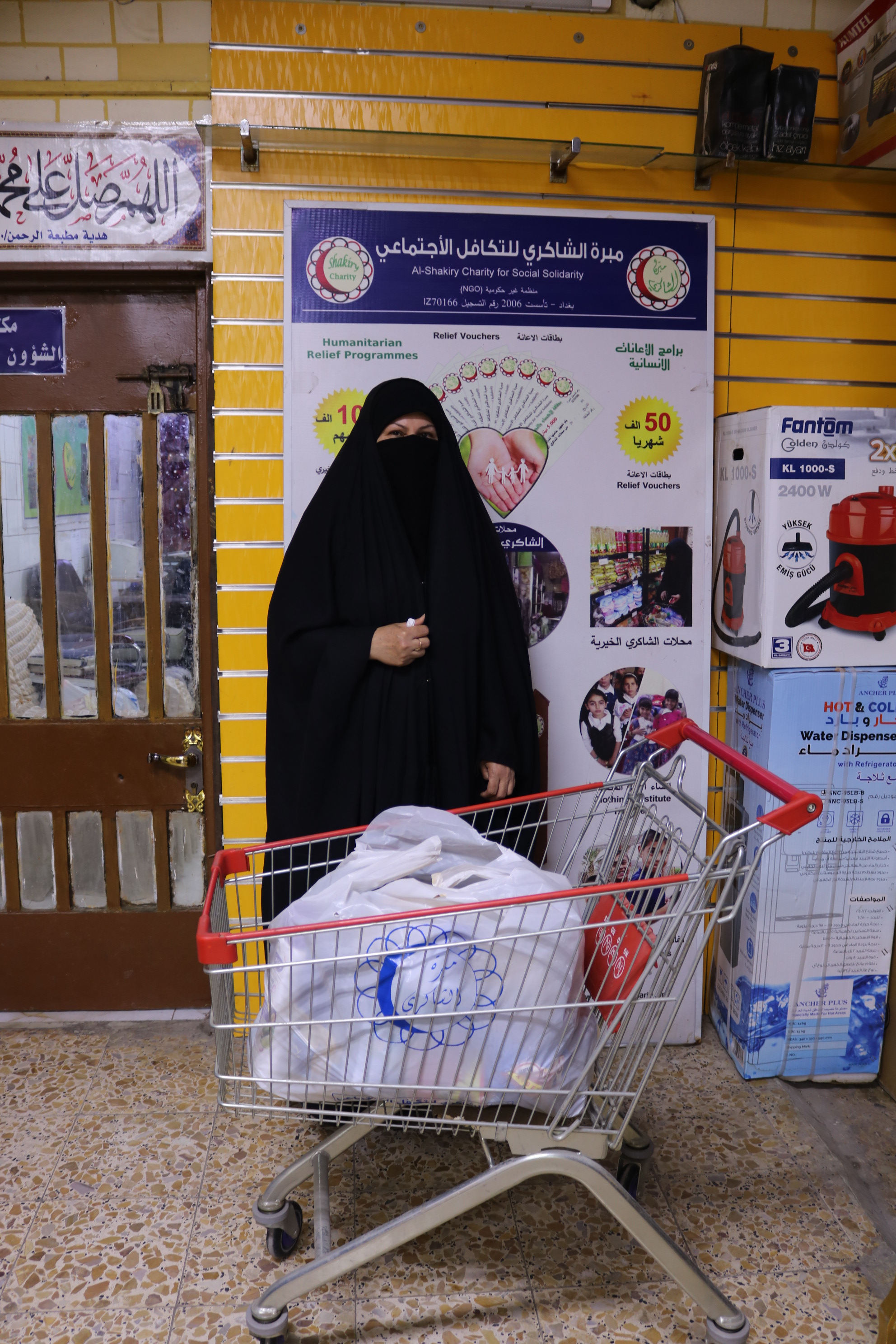 تسليم السيدة المتعففه ( انوار . ر . م ) بطاقة الغذاء والاكساء والمستلزمات الاخرى البالغ قيمتها (50)الف.د.ع ومقدمة من قبل الحاج ./ عبد الصاحب الشاكري .
