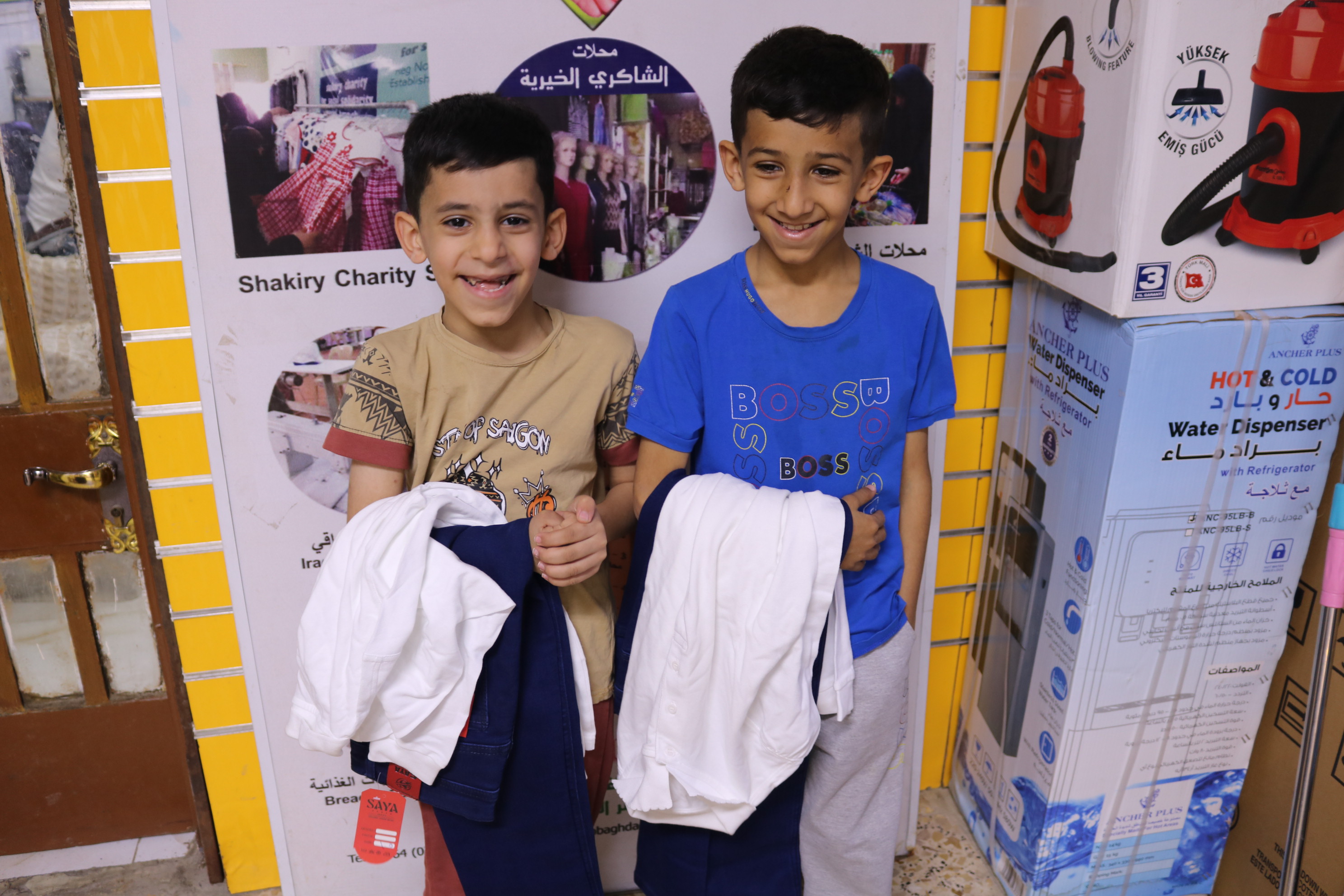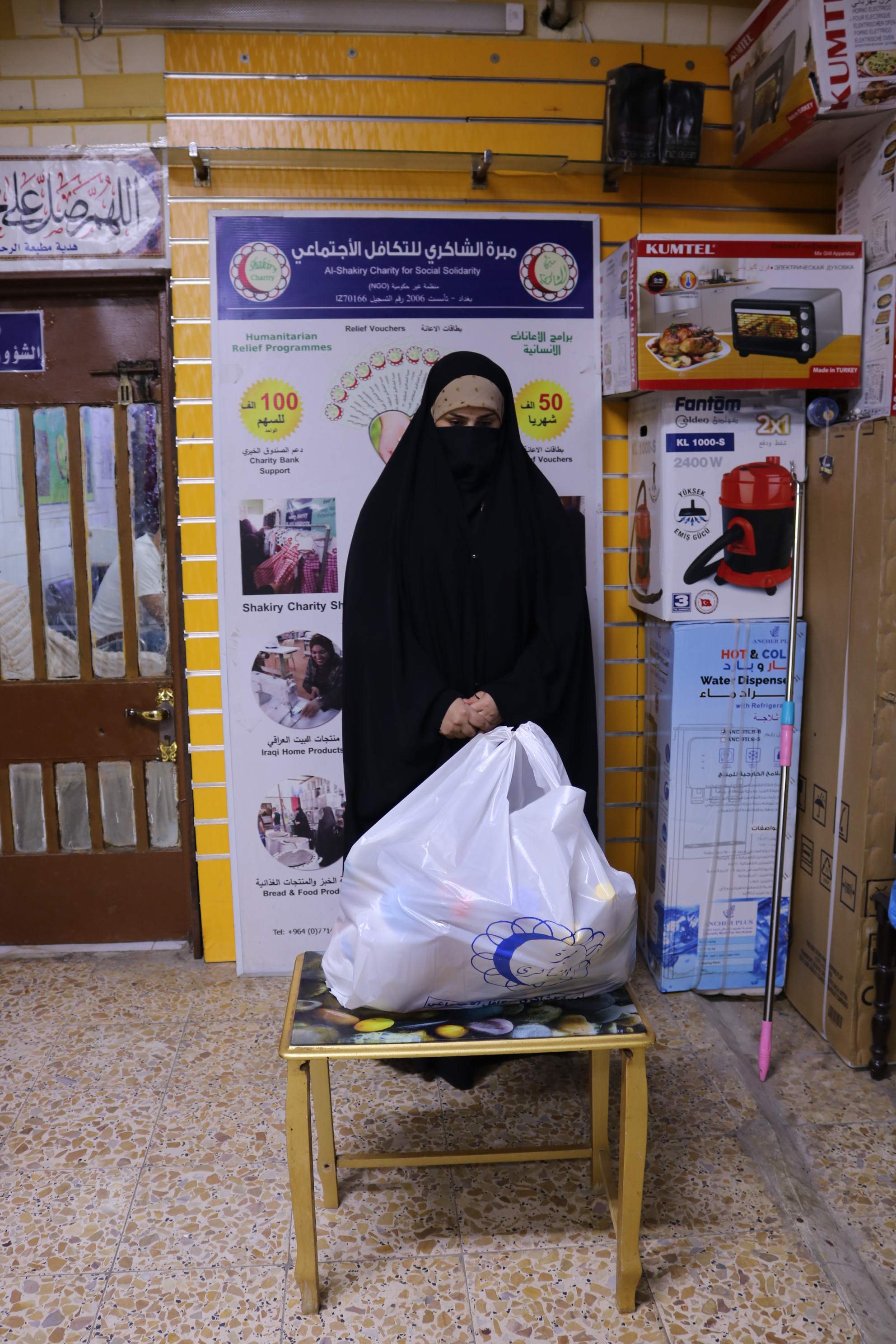 بعد الاستلام ارغبت الارملة بأختيار ما يناسبها من/ملابس مدرسية وغذائية وتم تجهيزها من محلات الشاكري الخيرية .