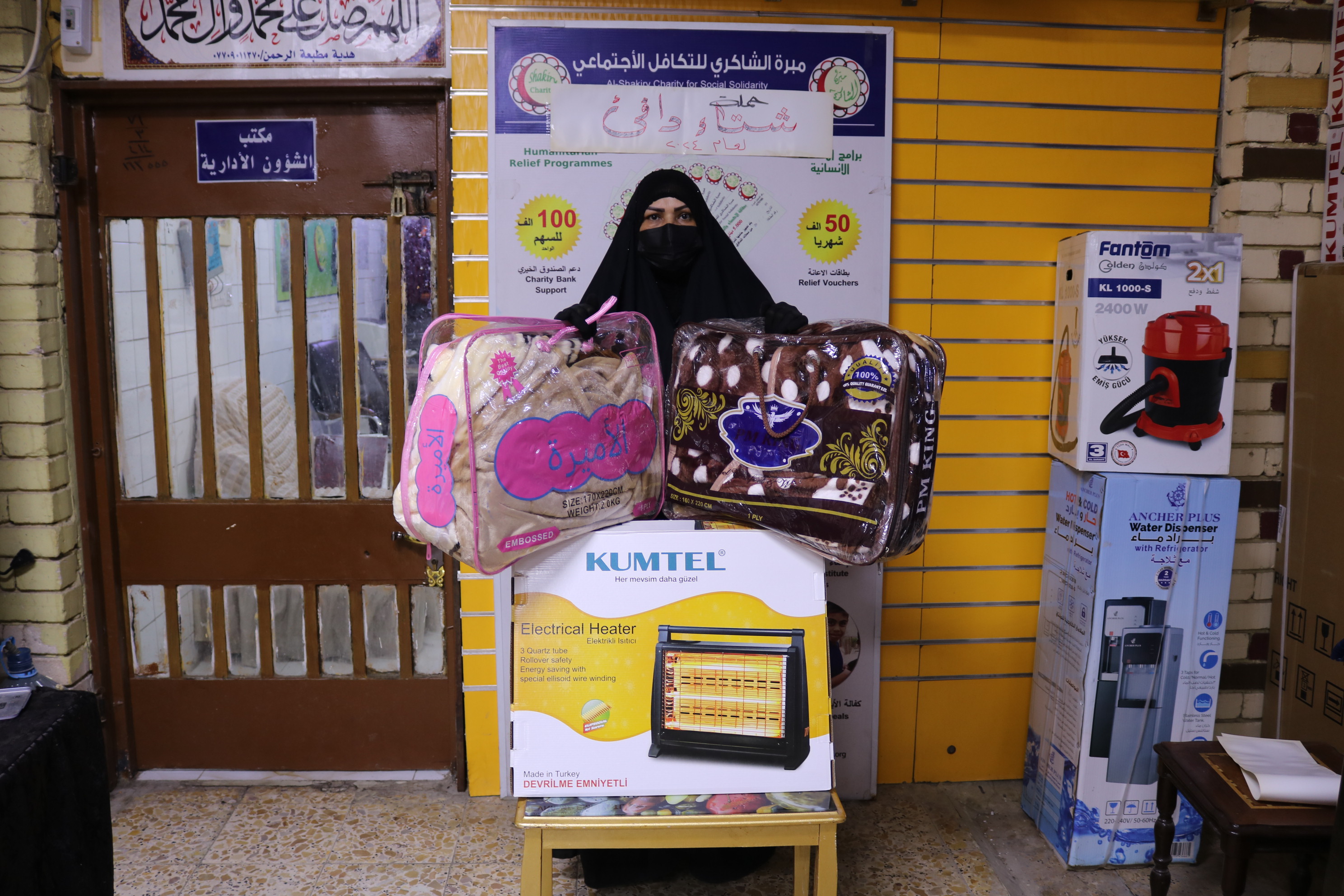 بعد استلامها ارغب بأختيار ما يناسبها /هيتر وبطانيات وتم تجهيزها من محلات الشاكري الخيريه.