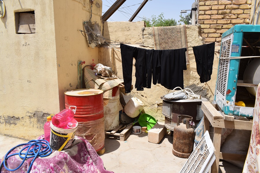 يفتقرالبيت الى العديد من المستلزمات المعيشة لكونها لا تستطيع شرائها بسبب العوز المادي .
