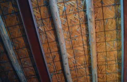 سقف احد الغرف من اعواد الخشب وقطع من الكارتون والنايلون لايحمي من برد الشتاء وحر الصيف , المنزل يفتقر الى ابسط مقاومات المعيشيه البسيطه .