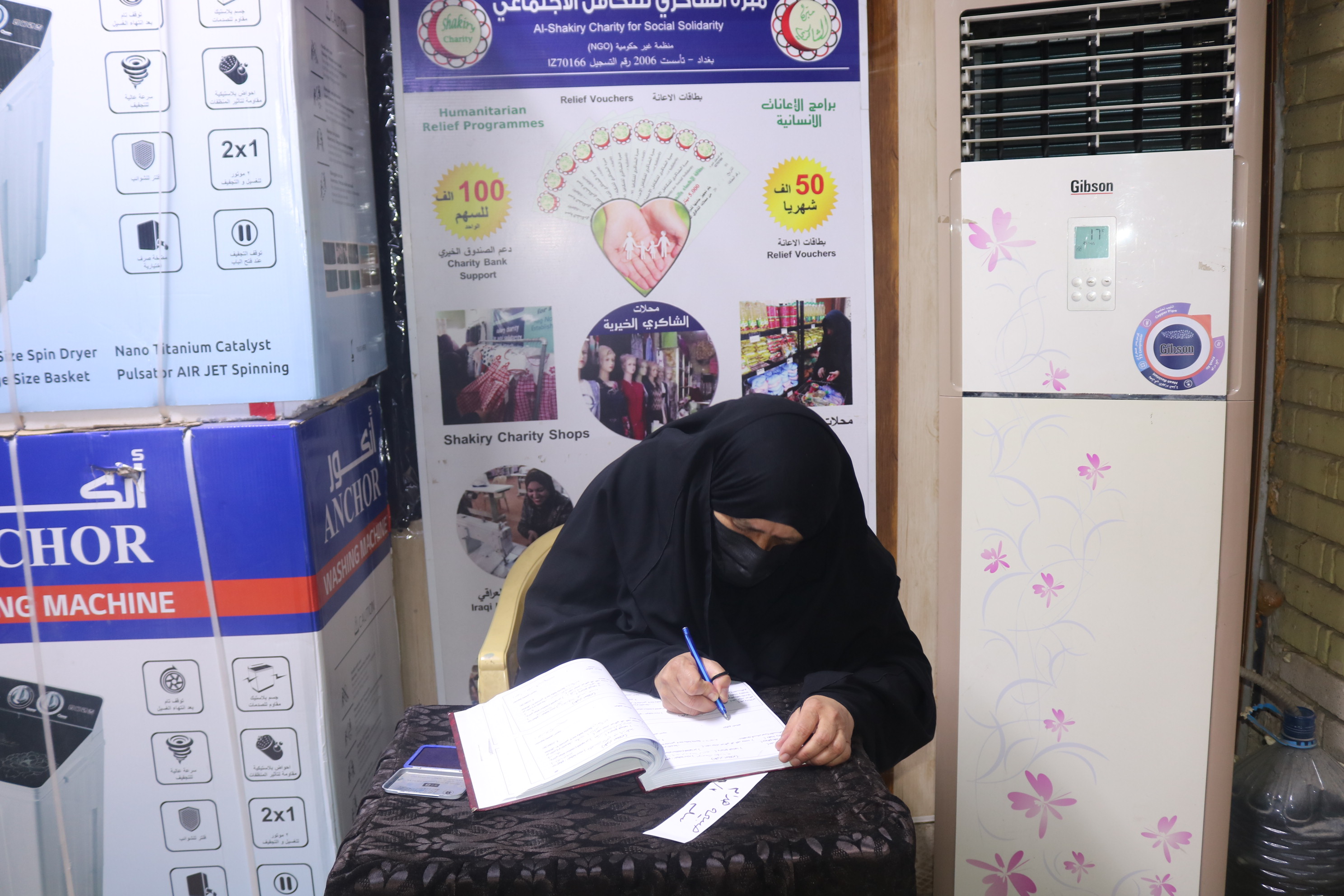 بعد الاستلام سددت الارملة القسط السابع المتبقي في ذمتها لمحلات الشاكري الخيرية .