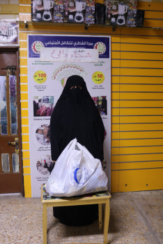 بعد الاستلام ارغبت الارملة بأختيار بطانيات وهيتر تدفئه ومواد غذائية وتم تجهيزها من محلات الشاكري الخيرية