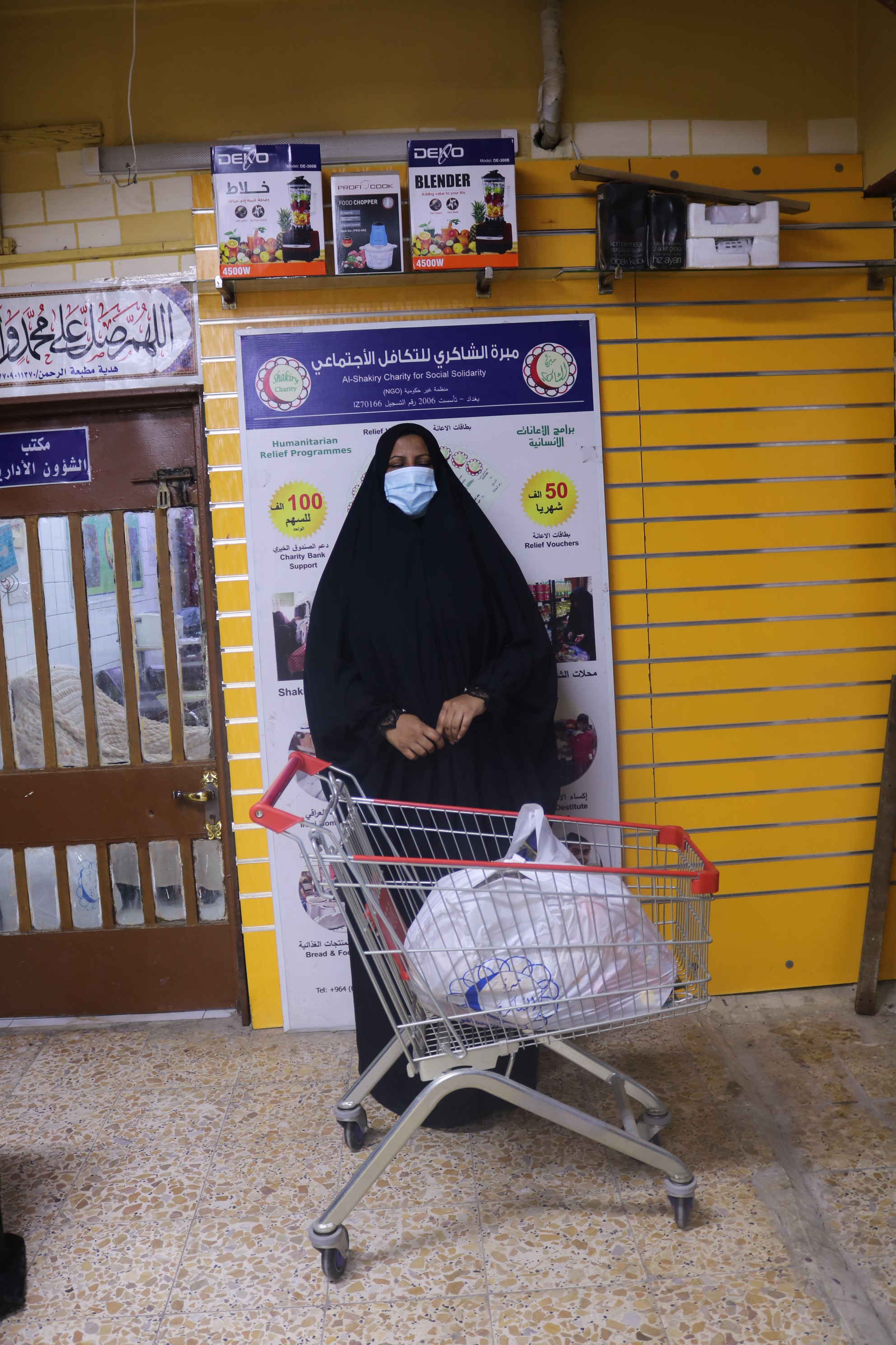بعد الاستلام ارغبت المتعففه بأختيار ما يناسبها من /مواد غذائية وتم تجهيزها من محلات الشاكري الخيريه.