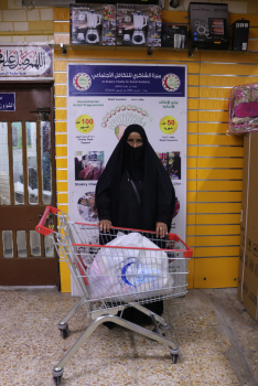 حيث تم تأمين بطاقة الغذاء والاكساء وقيمتها (50) الف.د.ع من قبل المتبرع الكريم الحاج / ك . ش وتم تسليمها محتوياتها وفق رغبتها بأختيار ما يناسبها من / المواد الغذائية التي تم تجهيزها من محلات الشاكري الخيرية .