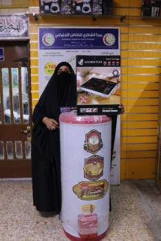 بعد الاستلام ارغبت الارملة بأختيار ما يناسبها من / سخان ماء وطباخ كهربائي وملابس مدرسية وتم تجهيزها من محلات الشاكري الخيريه ويتم تسديدها من خلال الكفالة الشهريه .