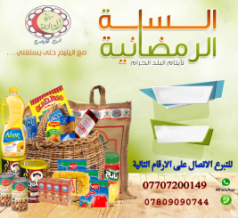 تدعوكم "مبرة الشاكري للتكافل الإجتماعي-فرع البصرة" للمساهمة في حملتها التي تحت عنوان {حملة شهر العطاء رمضان المبارك} والتي تتضمن توزيع السلال الغذائية على الأسر المتعففة والأيتام بقيمة (50) الف دينـار عراقـي لكل اسرة خلال شهر رمضان المبارك.