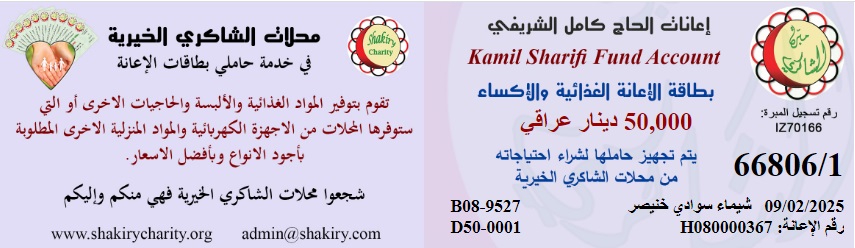 مبرة الشاكري للتكافل الاجتماعي / فرع البصرة