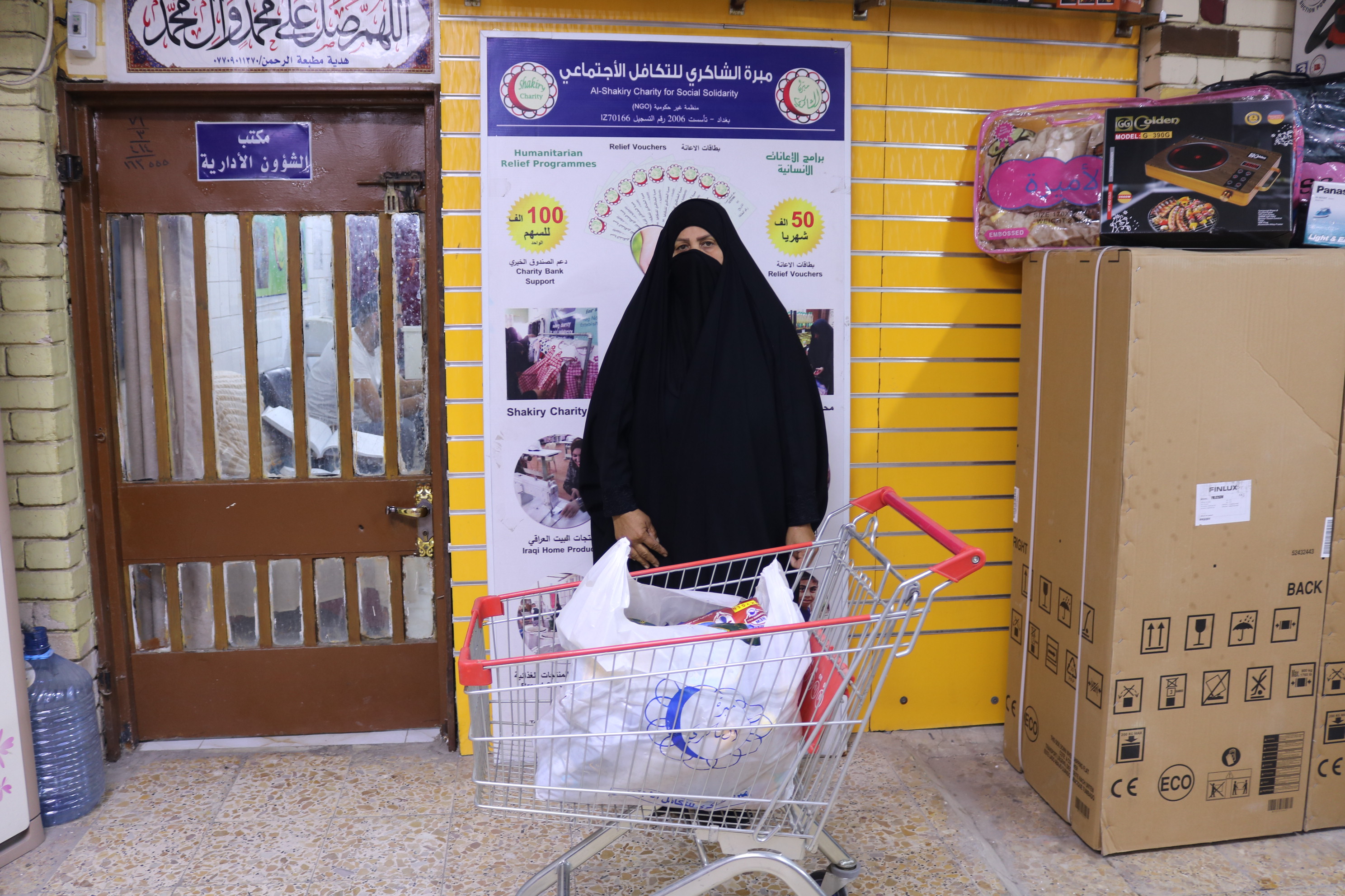 بعد الاستلام ارغبت الجدة في استلام مواد غذائية وتم تجهيزها من محلات الشاكري الخيريه .