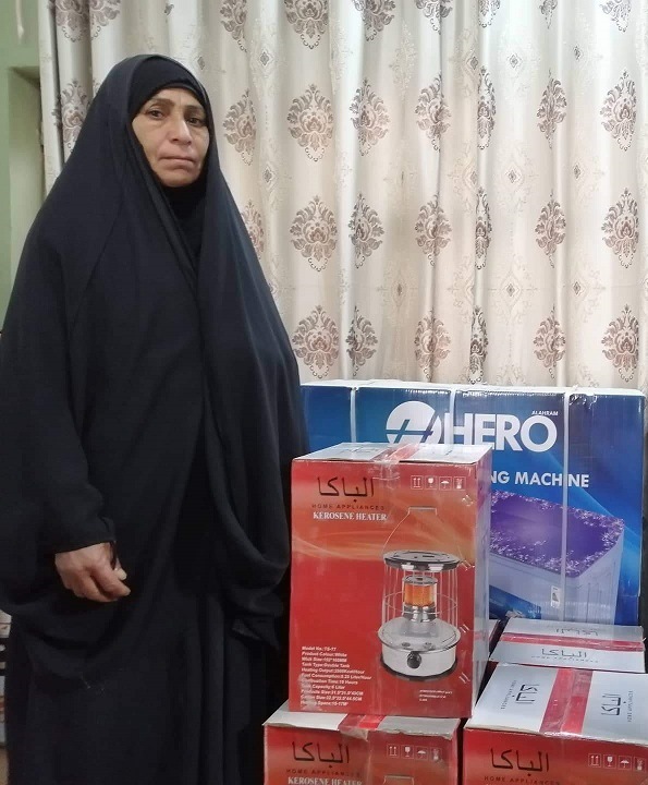 تبرعت السيده / فيروز الواسطي بمبلغ وقدره (70 ) الف دينار عراقي الى اسره السيده ( شيماء . ع . ف ) كمساعدة لأيتامها لتوفير اهم احتياجاتهم , ابدت السيده رغبتها في الحصول على ( مدفاءه نفطيه ) وتم توفيرها عن طريق محلات الشاكري الخيريه .