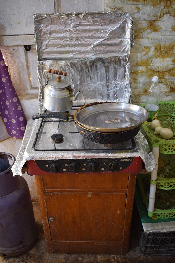 لاتزال تسكن هي واسرتها في منزل ضمن العشوائيات مع اهل زوجها، ويعمل زوجها "عامل بناء" بأجرة يومية.