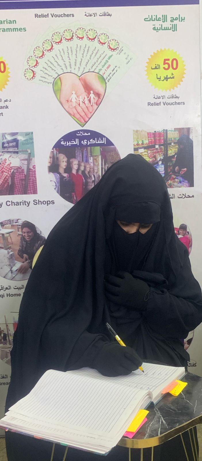 تسليم كفاله الايتام من المتبرعه/ زينب حهاد بمبلغ قيمته (50) الف دينار لعائلة للارمله (هاجر,ح)وقد ابدت رغبتها بالحصول على احتياجاتها الضرورية ( ملابس ) من محلات الشاكري الخيرية المرتبطة بالفرع .