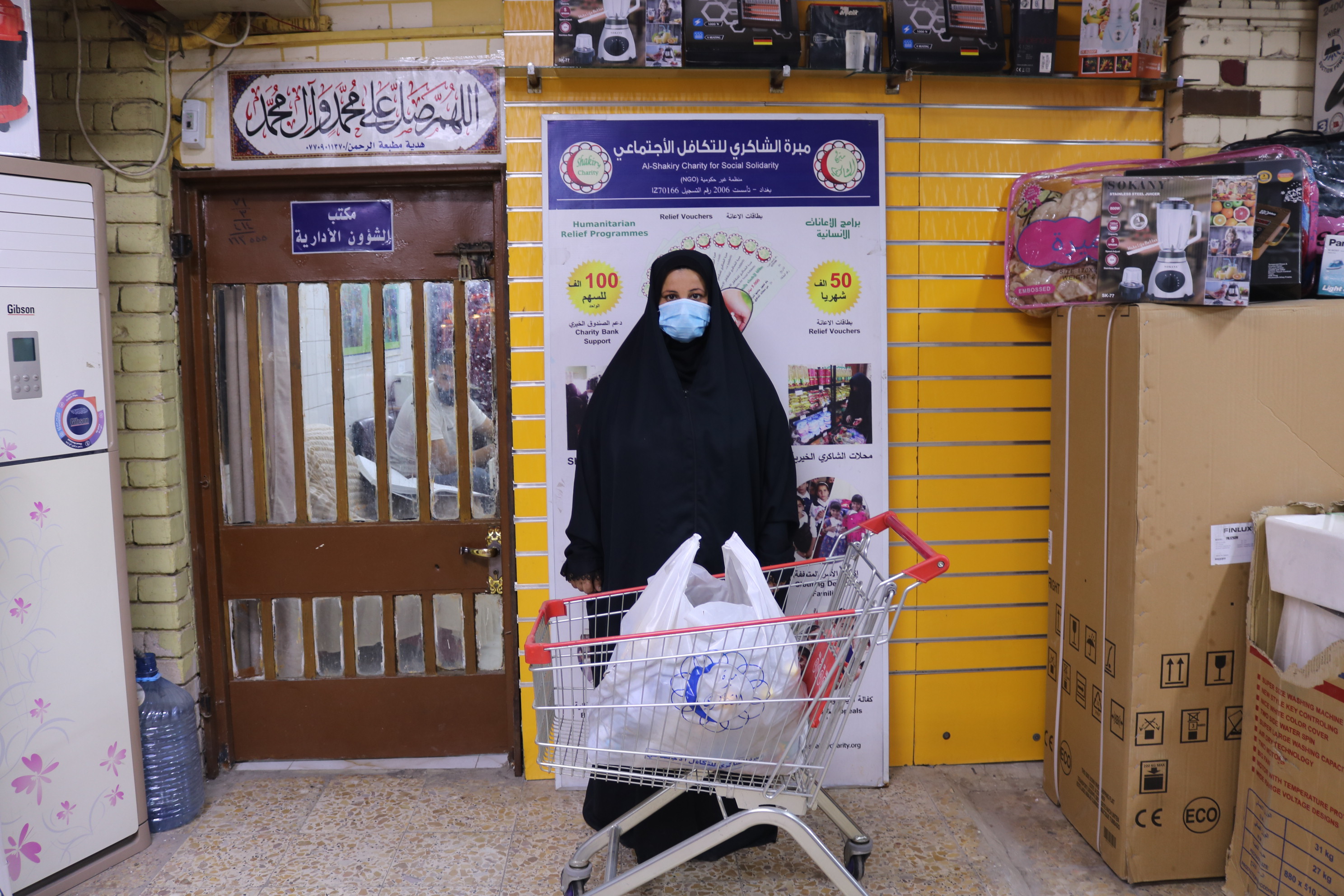 بعد الاستلام ارغبت المتعففه بأختيار ما يناسبها من/ مواد غذائية وخلاط وهيتر وتم تجهيزها من محلات الشاكري الخيريه.