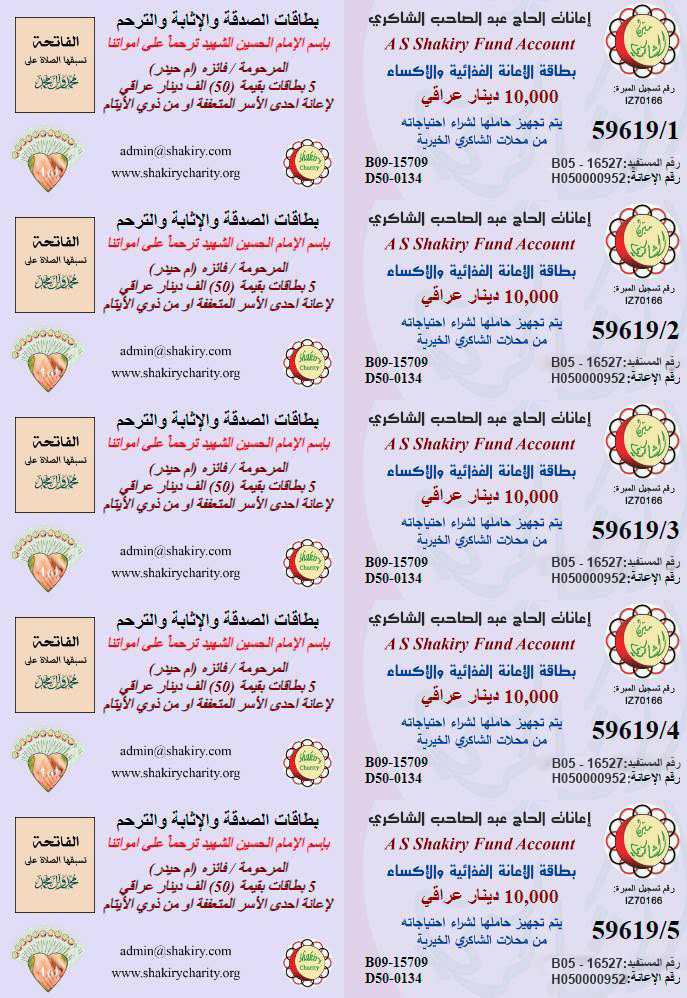 تم تسليم التبرع الوارد من الحاج / عبد الصاحب الشاكري بمبلغ وقدره (50) الف دينار عراقي وذلك عن بطاقات الاثابه والترحم على روح المرحومه / فائزه ( ام حيدر) لاسرة المتعففه ( حنان . ك . ص ) التي تم تجهيزها ب ( سله غذائيه رمضانيه) وحسب رغبتها من محلات الشاكري الخيرية