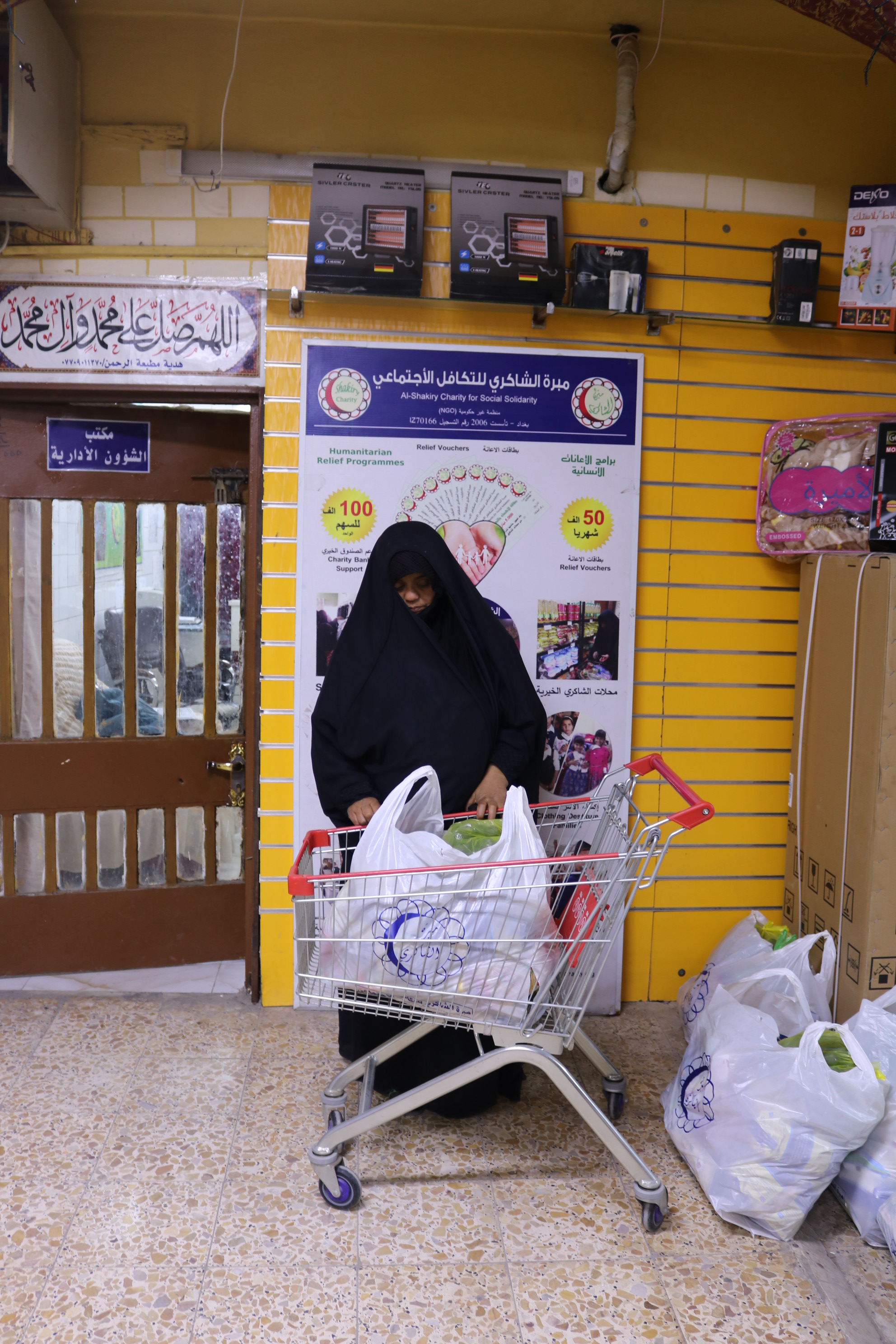 بعد الاستلام ارغبت المتعففه في استلام المواد الغذائية وتم تجهيزها من محلات الشاكري الخيريه.
