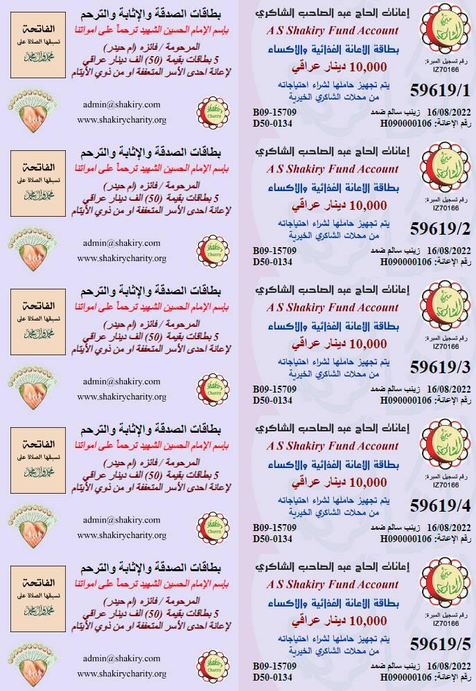 تسليم السيدة المتعففه ( حنان . ر . م ) بطاقة الاثابه والترحم لروح المرحومه الحاجه فائزة ام حيدر (رحمها الله)والبالغ قيمتها (50)الف.د.ع مقدمة من قبل المتبرع الحاج الكريم / عبد الصاحب الشاكري .