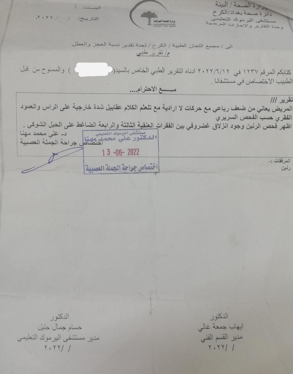 -كادر الفرع والاسرة يناشدون اهل البر والاحسان لمد يد العون لهم والله لايضيع اجر من احسن عملاً .