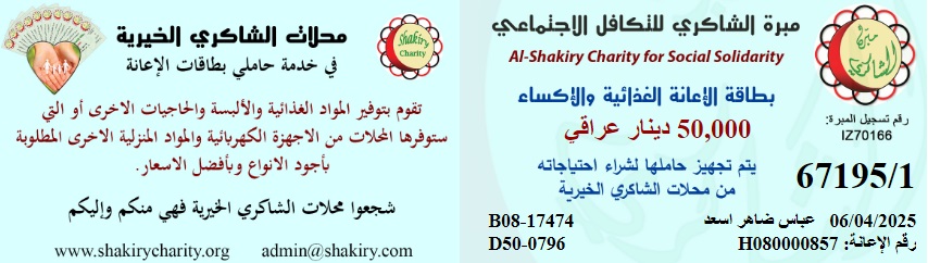 مبرة الشاكري للتكافل الاجتماعي / فرع البصرة