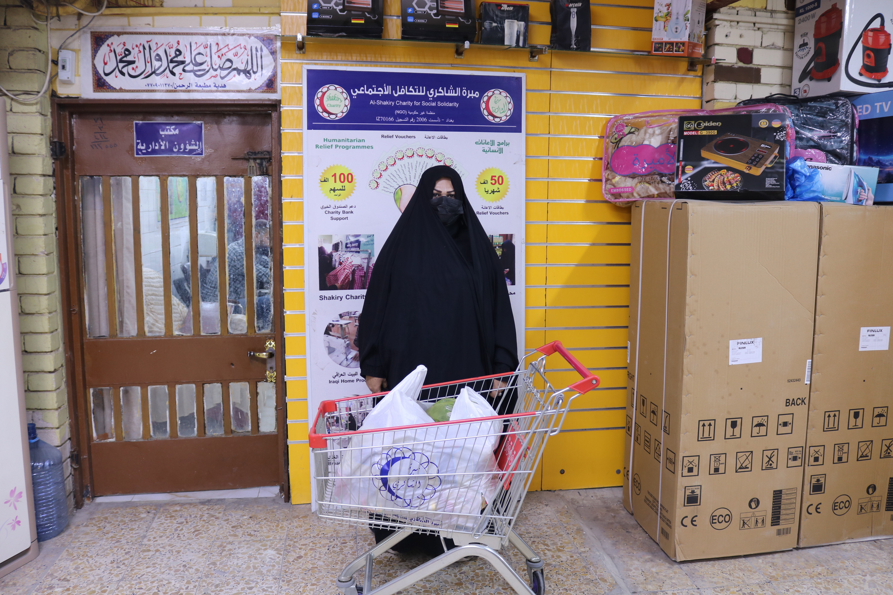 بعد الاستلام ارغبت المتعففة بالحصول على/ مواد غذائية وتم تجهيزها من محلات الشاكري.
