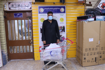 تسليم زوج السيدة المعاقة المتعففه ( بسهن . ن . غ ) بطاقة الغذاء والاكساء والمستلزمات الاخرى البالغ قيمتها (50)الف.د.ع مقدمة من الحاج / عبد الصاحب الشاكري .
