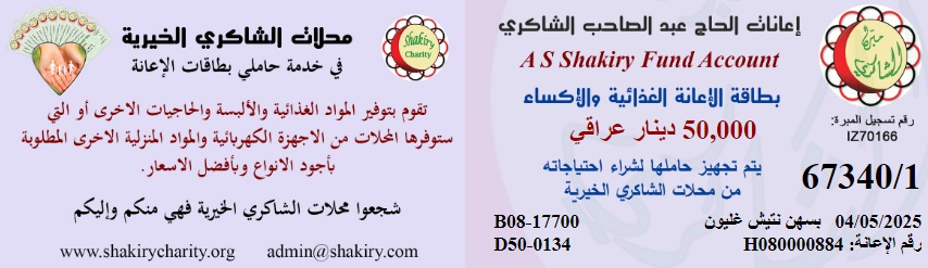 مبرة الشاكري للتكافل الاجتماعي / فرع البصرة