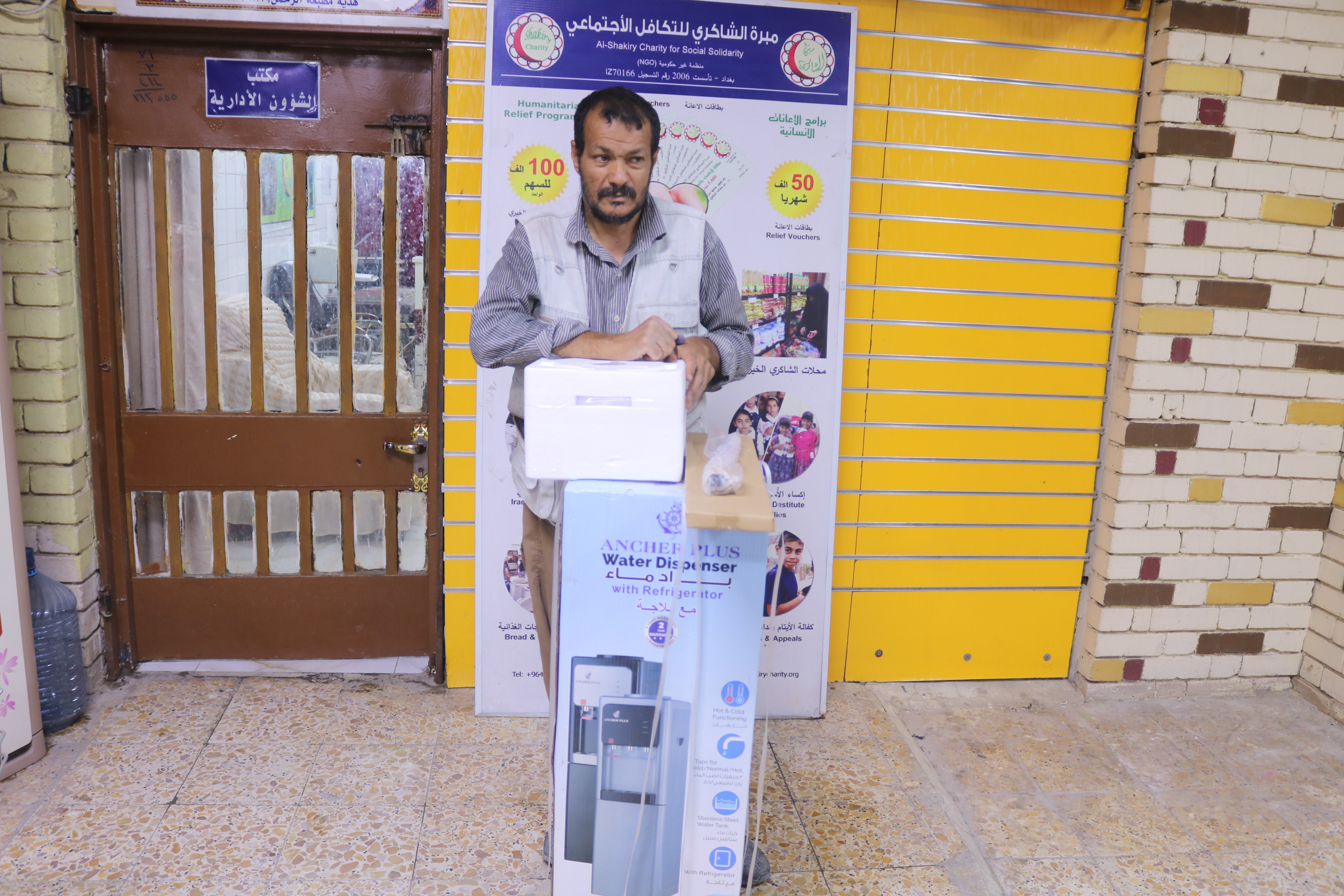 بعد الاستلام ارغبت المتعفف في اختيار / براد ماء ومروحه سقفيه واحذية اطفال وتم تجهيزه من محلات الشاكري الخيريه ويتم التسديد من خلال الكفالة الشهريه من المتبرع .