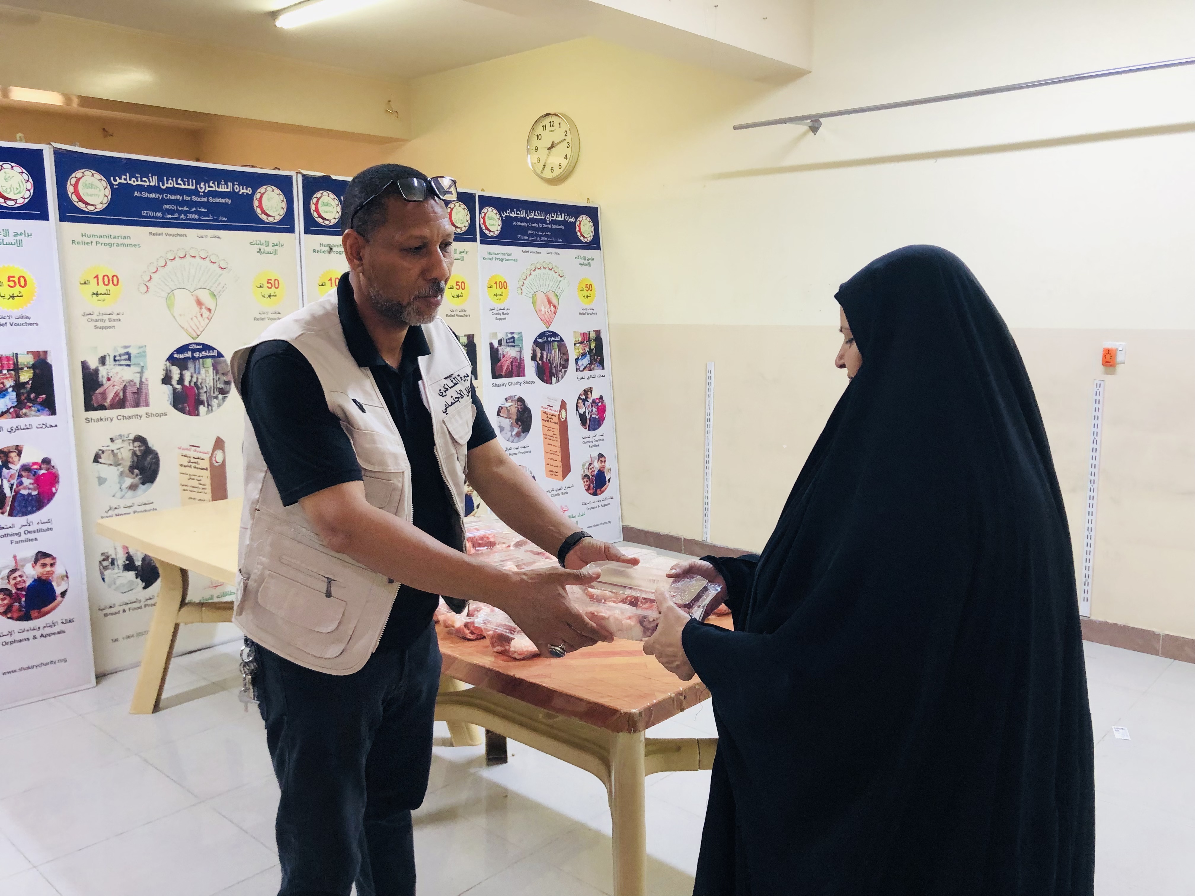 وقام كادر الفرع بتجهيز الذبيحة وذبحها صباح اول ايام العيد المبارك وتم توزيع لحومها على الاسر المسجلة لدى الفرع من ذوي الايتام والمتعففة وذوي المرضى والاحتياجات الخاصة .