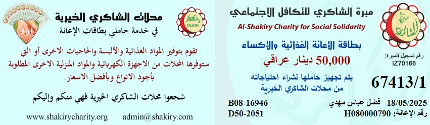 مبرة الشاكري للتكافل الاجتماعي / فرع البصرة