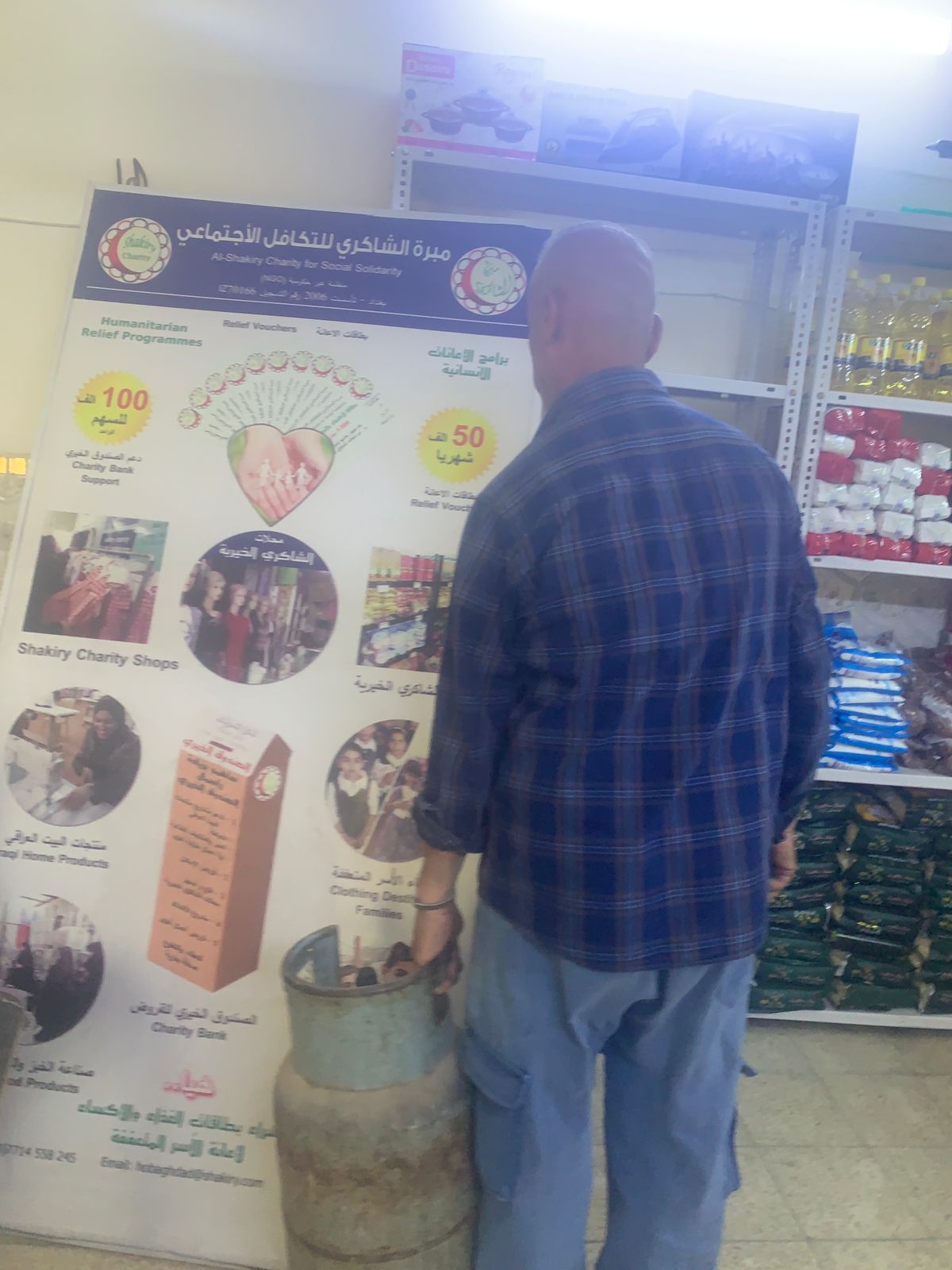 تسليم المساعده المالية من المتبرعين (تبرعات المحسنين الاكارم ) بقيمة (50) الف دينار لعائلة المتعففة (سندس,ف)وقد حضر شقيقها والذي ابدى رغبته بشراء بعض احتياجاتهم الضروريه ( اسطوانه غاز ) لحاجتهم الماسه لها يعد هذا العمل الانساني تفعيلاً لمحلات الشاكري الخيريه وفق نظام بطاقات الغذاء والاكساء المدعوم من الصندوق الخيري .