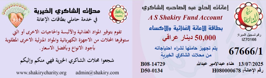 مبرة الشاكري للتكافل الاجتماعي / فرع البصرة
