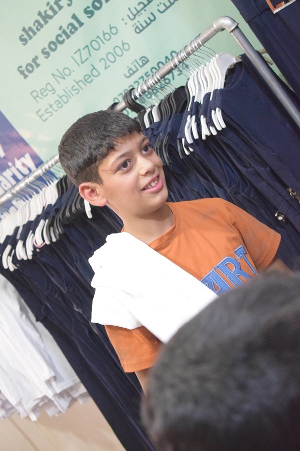 بعد الاستلام ابدت السيدة رغبتها بالحصول على / مستلزمات مدرسيه حيث تم تجهيزها من محلات الشاكري الخيرية .