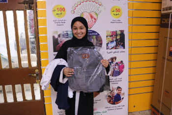 بعد الاستلام رغبت المتعففه في حصولها على ملابس مدرسية وتم تجهيزها من محلات الشاكري الخيريه.