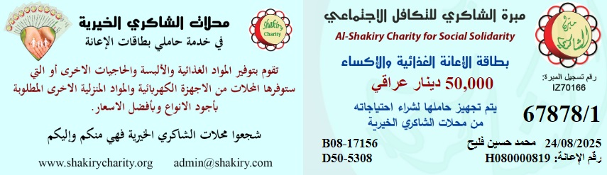 مبرة الشاكري للتكافل الاجتماعي / فرع البصرة