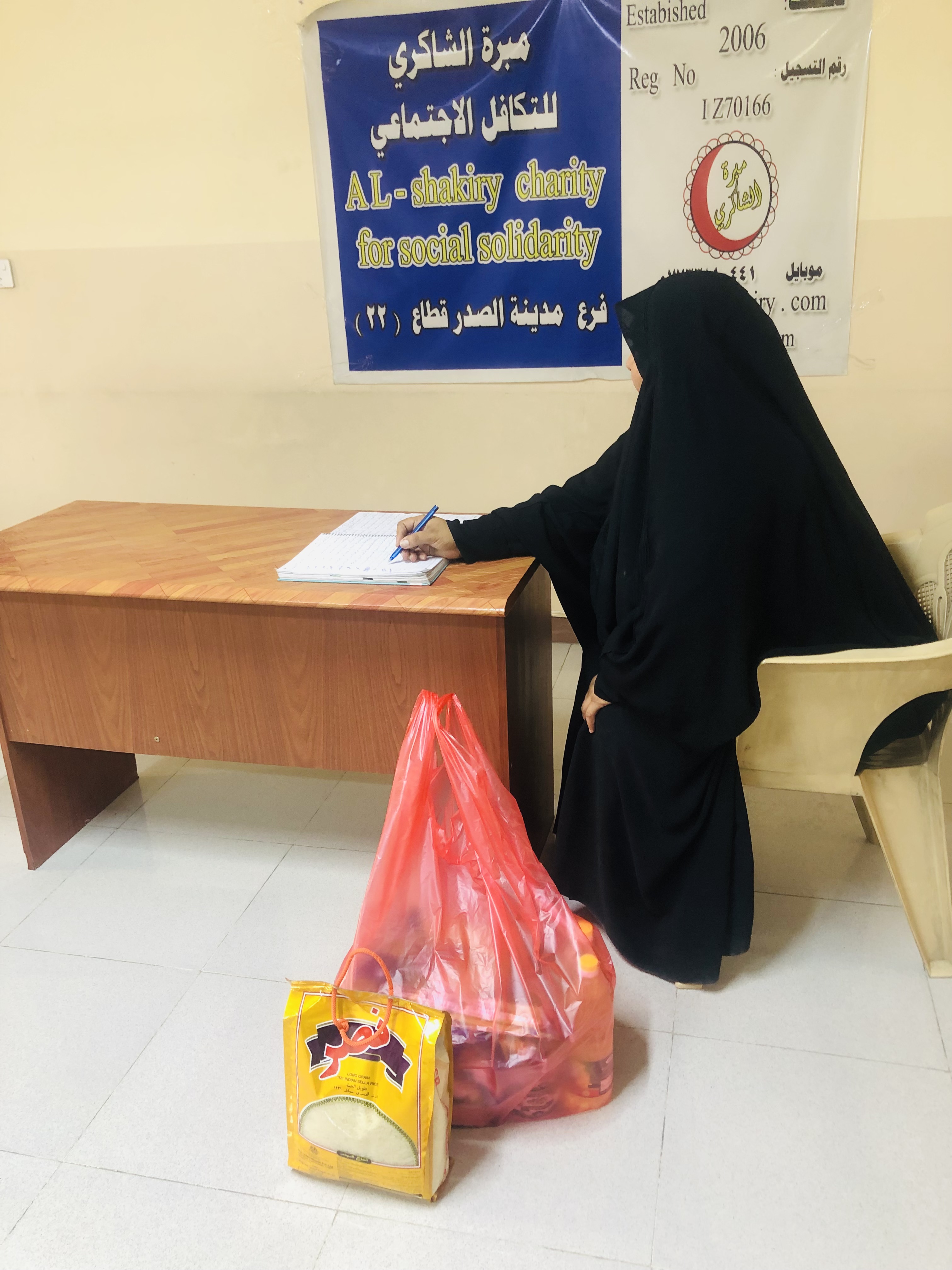 .الى اسرة المتعفف (حسين ، ع ، ح ) وبناء على رغبتها تم تجهيزها بسلة غذائية من محلات الشاكري الخيرية