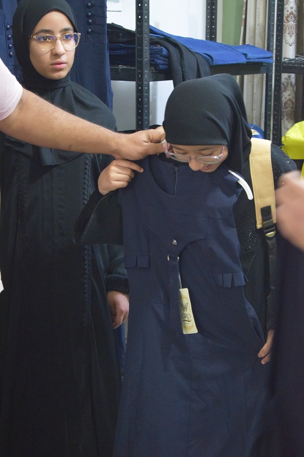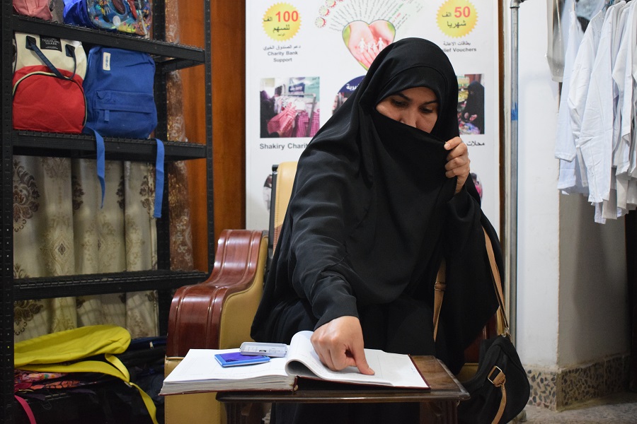 بعد الاستلام ابدت السيدة رغبتها بالحصول ( مستلزمات مدرسيه ) حيث تم تجهيزها من محلات الشاكري .