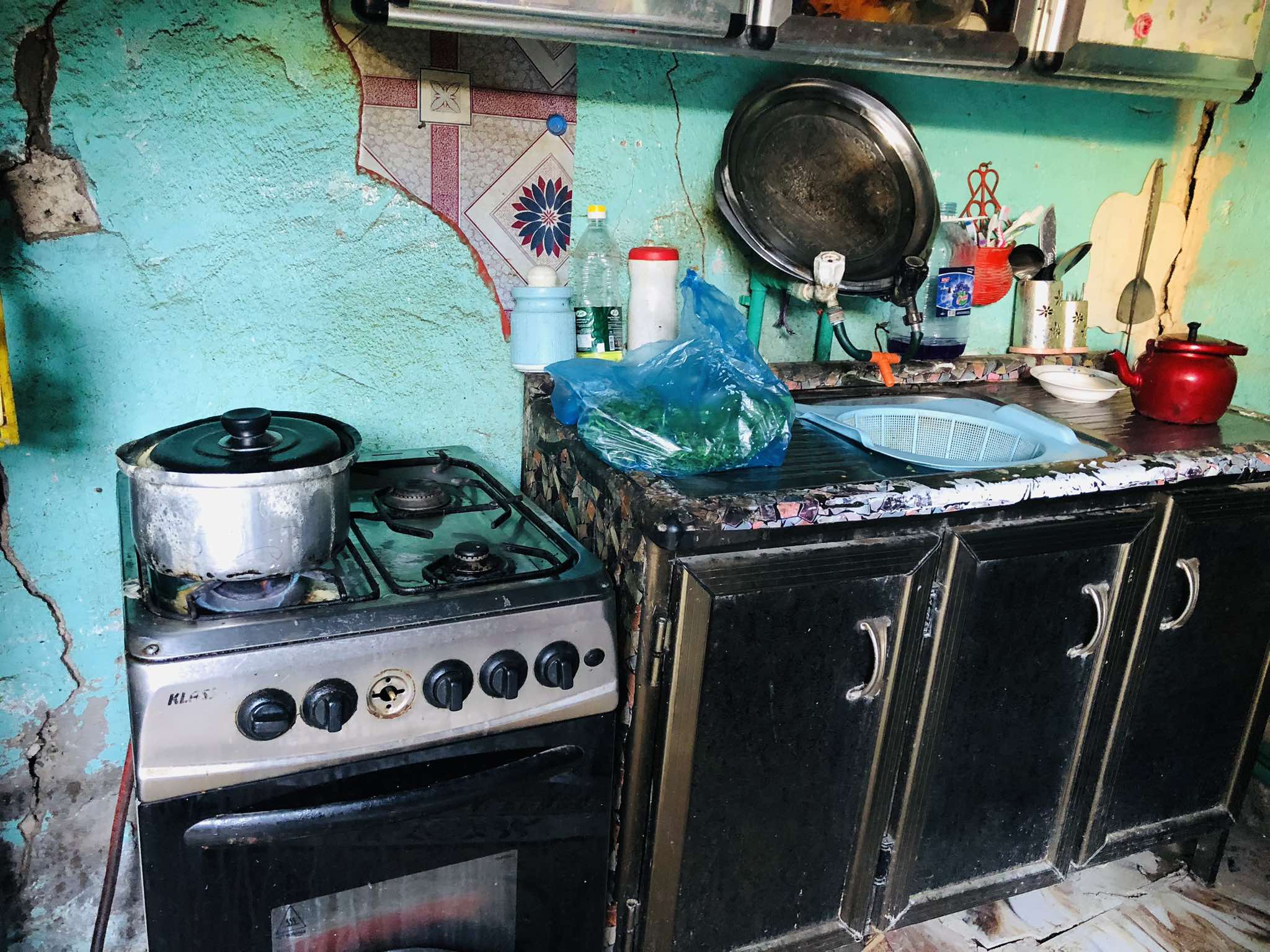 تسكن المتعففة مع ابنائها الأربعة القاصرين في بيت عشوائي و مؤجر بقيمة (150) الف دينـار عراقـي.