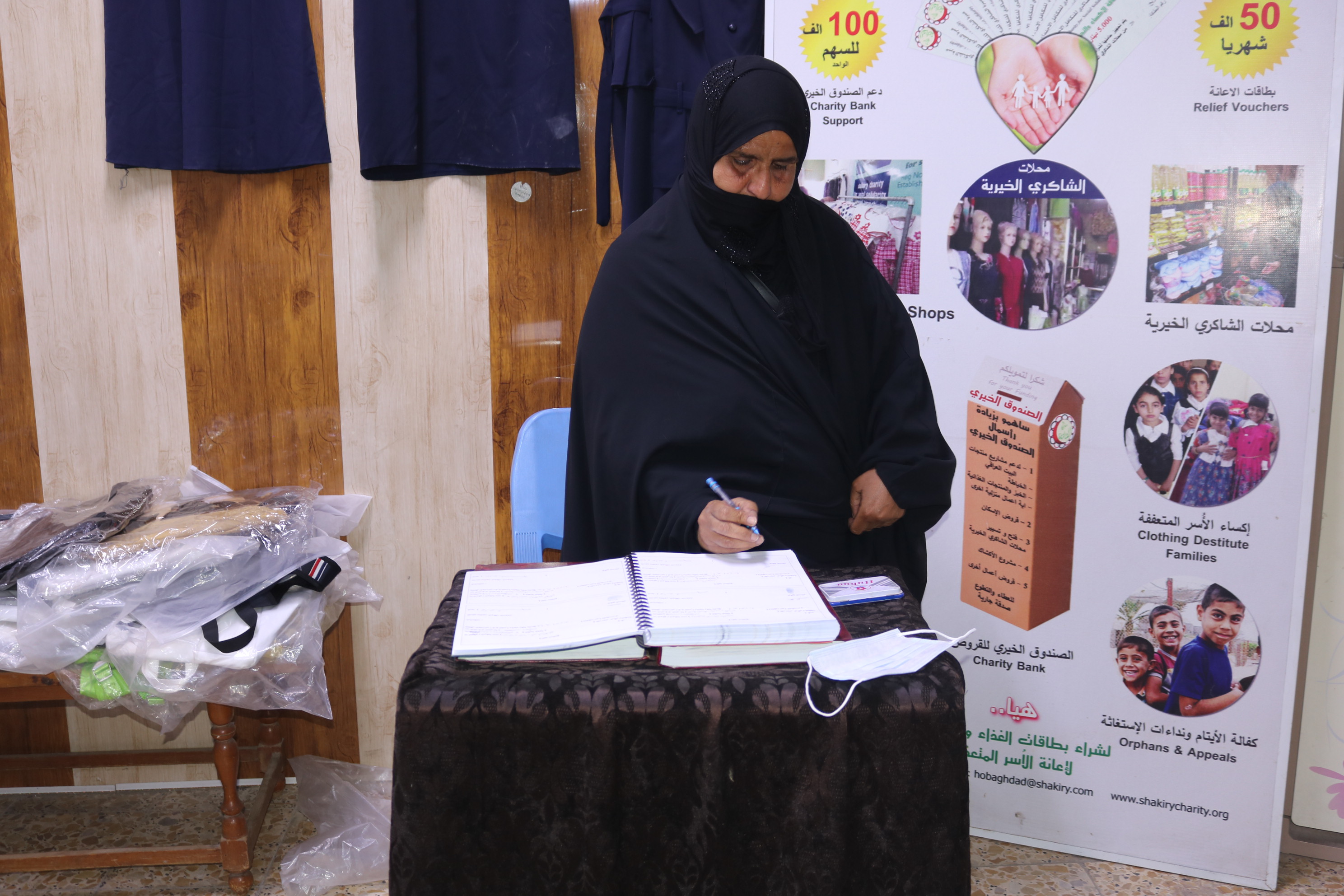 بعد الاستلام ارغبت المتعففه لحصولها على ملابس مدرسية لاحفادها وتم تجهيزها من محللات الشاكري الخيريه.