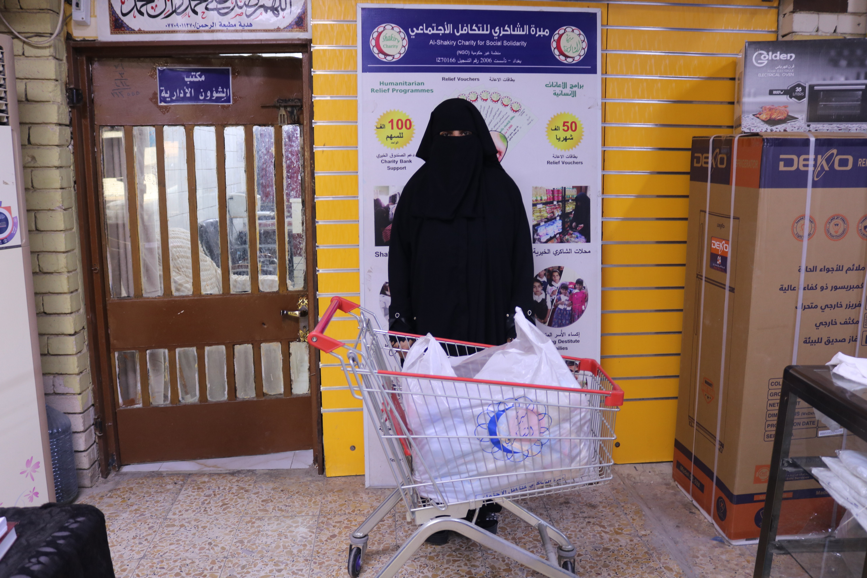 بعد الاستلام ارغبت الارملة لحصولها على مواد غذائية وتم تجهيزها من محللات الشاكري الخيريه.