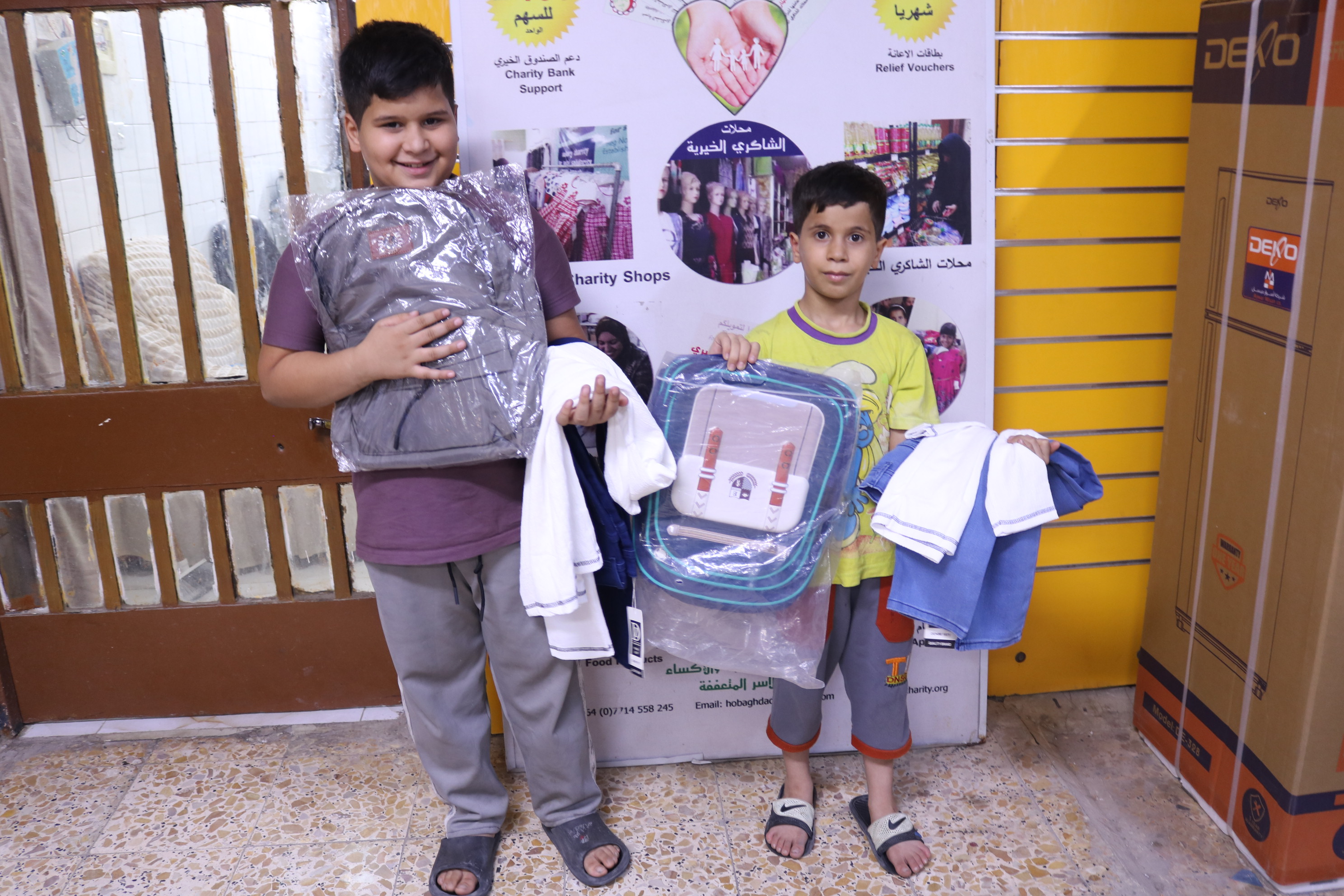بعد الاستلام ارغبت المتعففه لحصولها على ملابس مدرسية لاحفادها الايتام وتم تجهيزها من محللات الشاكري الخيريه.