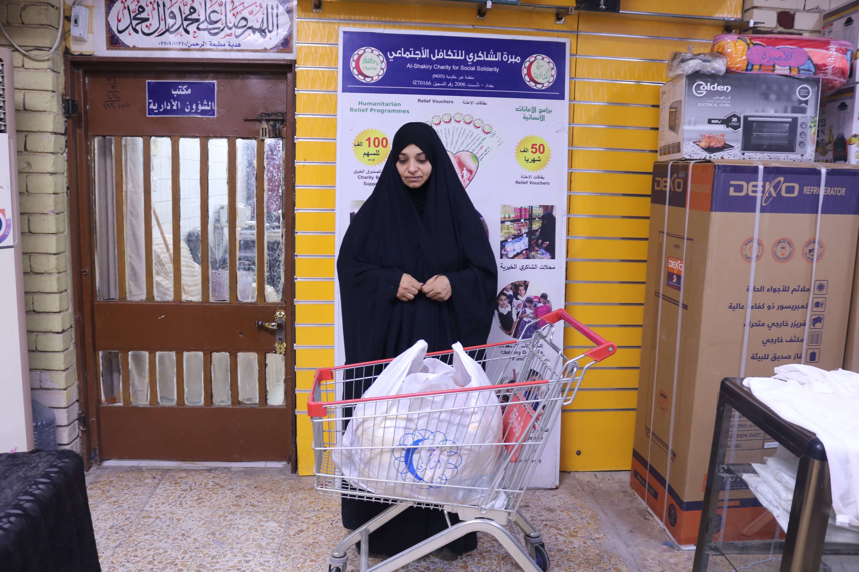 بعد الاستلام ارغبت الارملة في حصولها على مواد غذائية وتم تجهيزها من محلات الشاكري الخيريه .