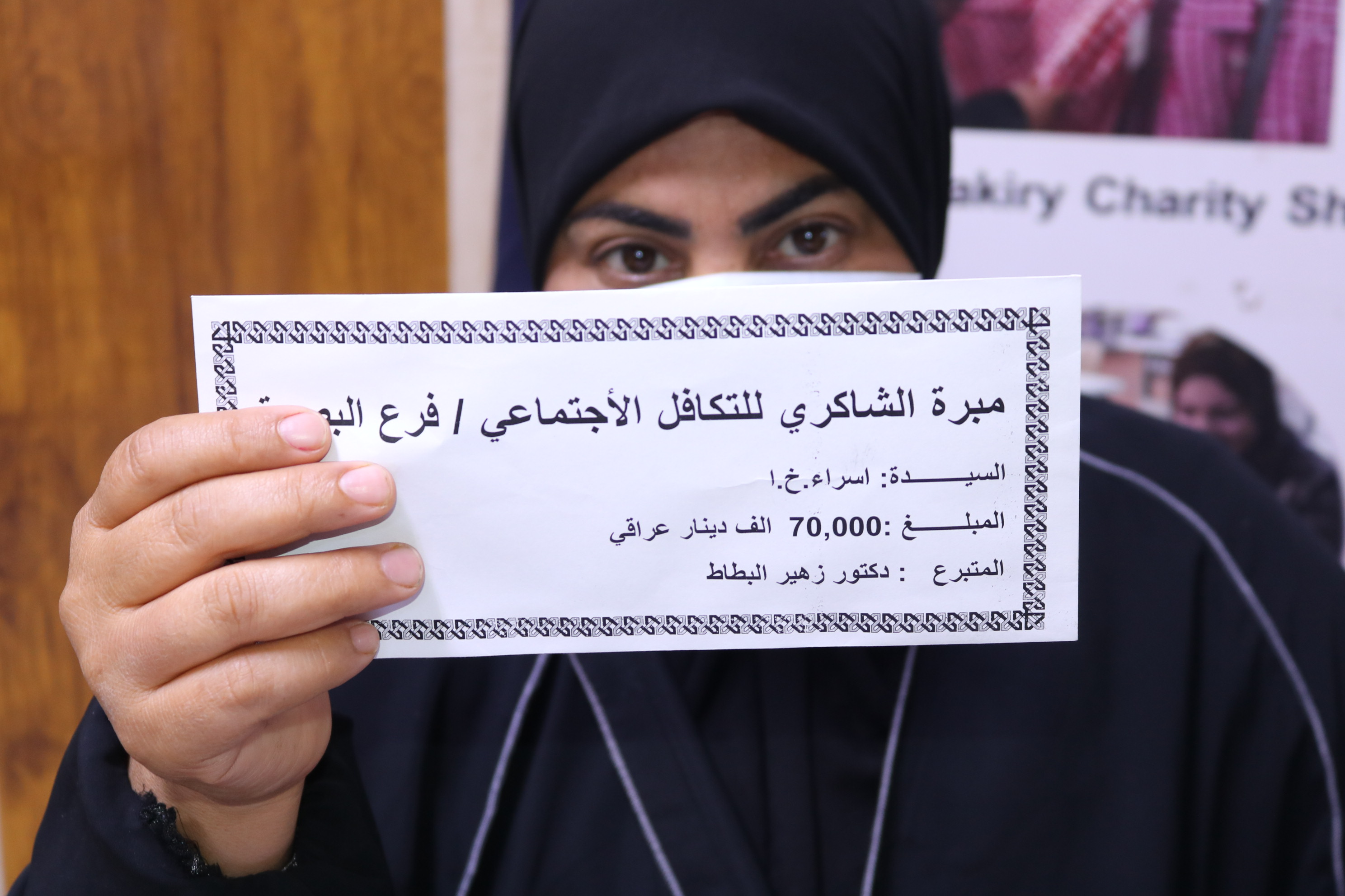 تسليم السيدة المتعففه ( اسراء . خ . ا ) مساعدة مالية قدرها (70) الف دينار عراقي .