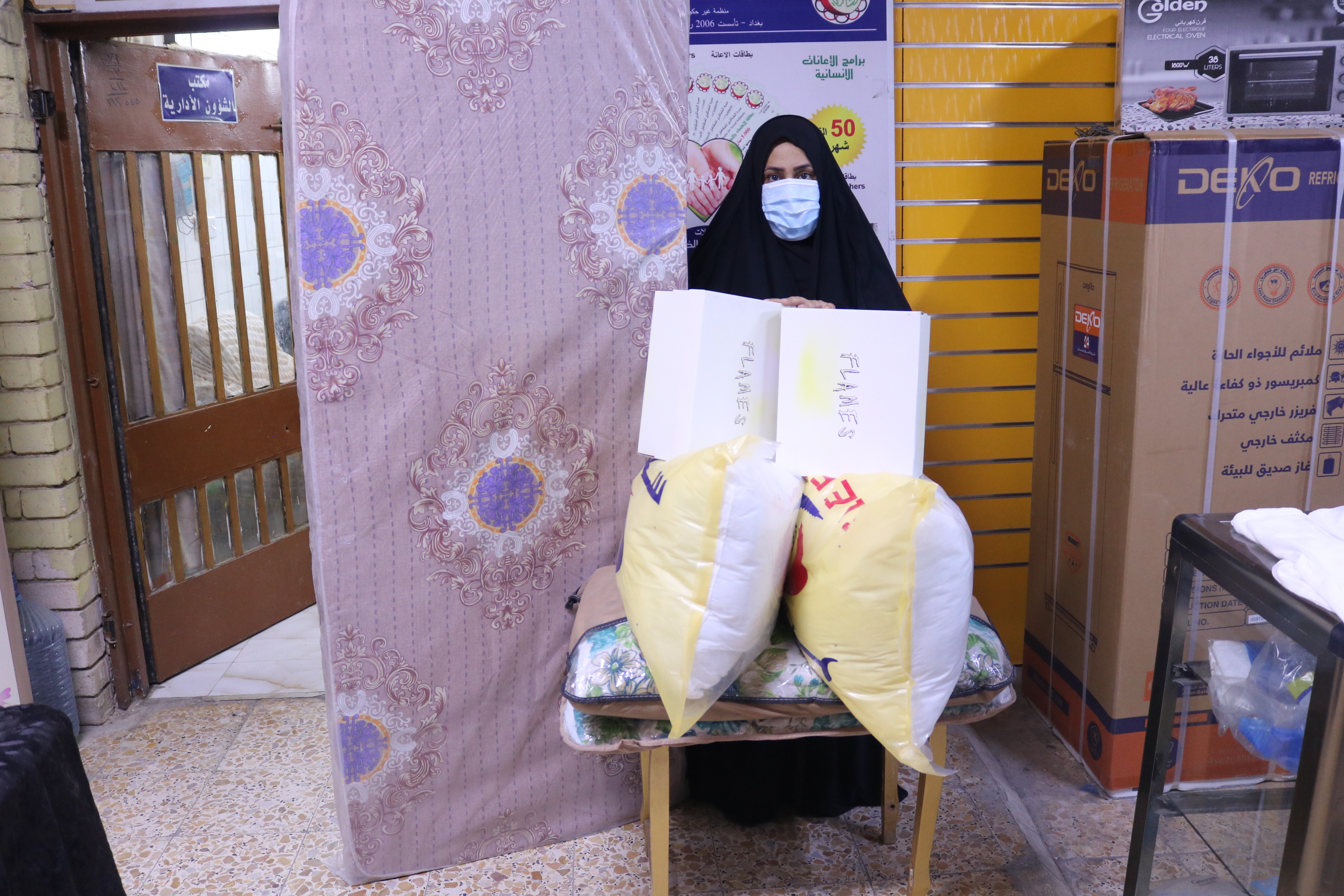 بعد الاستلام رغبت الارملة لحصولها على افرشة وخلاط كهربائي واحذية مدارس وتم تجهيزها من محلات الشاكري الخيريه.