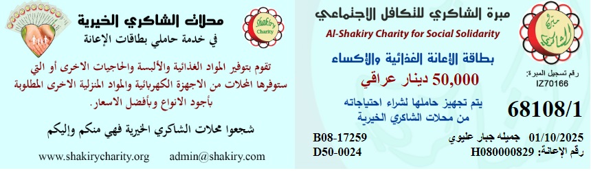 مبرة الشاكري للتكافل الاجتماعي / فرع البصرة