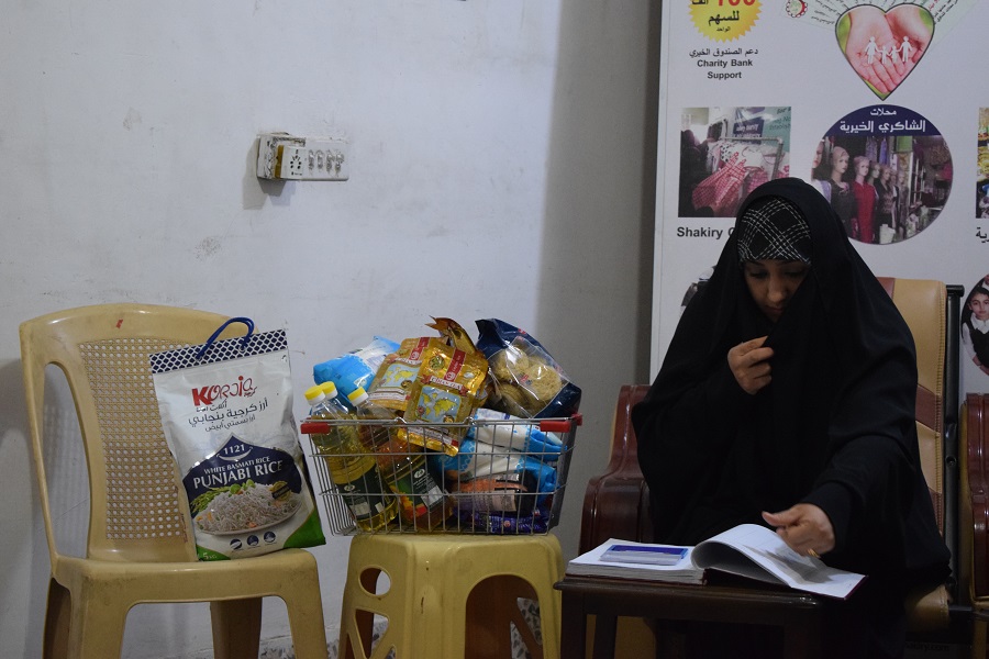 بعد الإستلام ابدت السيدة رغبتها بالحصول على "سلة غذائية" حيث تم تجهيزها من "محلات الشاكري الخيرية".