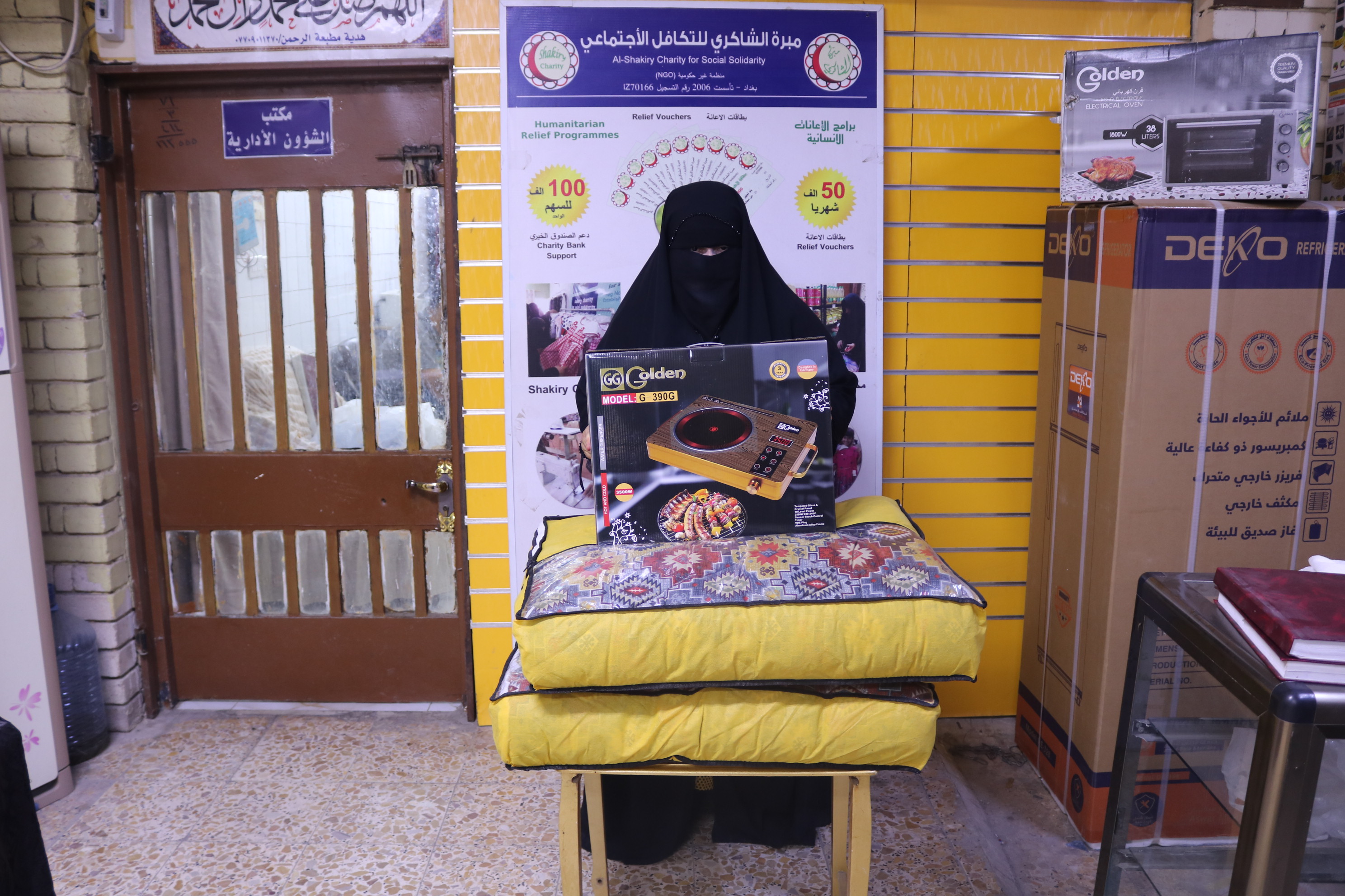 بعد الاستلام رغبت المتعففه حصولها على طباخ كهربائي وافرشة وتم تجهيزها من محلات الشاكري الخيريه.