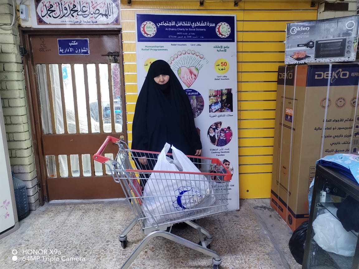 لأسرة الأرملة المتعففة/ (زينب ح. ر.)، بطاقة الغذاء والإكساء والمستلزمات الأخرى لأعانة أسرتها في تأمين احتياجاتهم الضرورية.