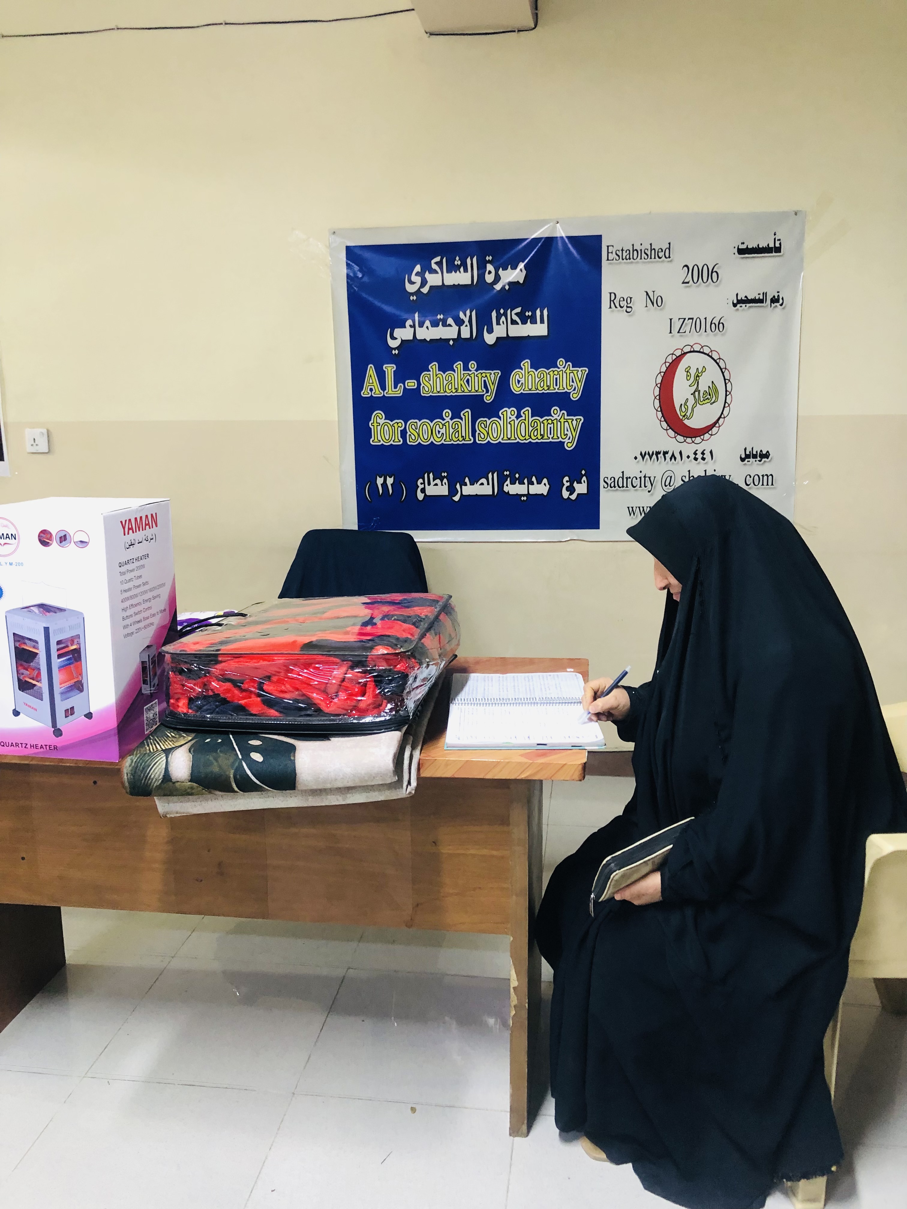الى أسرة الأرملة/ (اناس ص. م.)، وبعد الإتصال بهم وحضورهم رغبوا بالحصول على "مستلزمات منزلية شتوية" من "محلات الشاكري الخيرية".